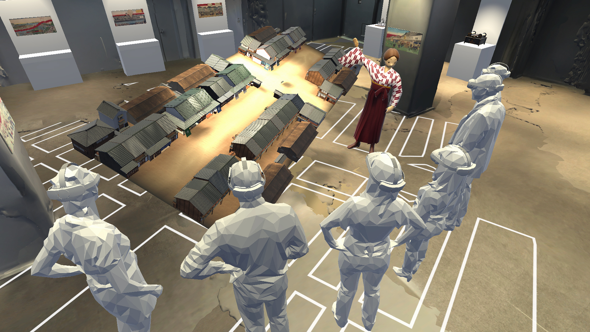 本イベントは、スマートフォンアプリ「ハイパー江戸博 明治銀座編」のデータを活用して作成されたもので、ヘッドマウントディスプレイを装着することで明治時代の銀座をリアルに体験できるコンテンツです。会場内には江戸東京博物館の収蔵品の複製が展示されており、ヘッドマウントディスプレイを通して観覧できるMR(Mixed Reality:複合現実)により、収蔵品への理解を深めることができる仕組みがあらたに開発されました。